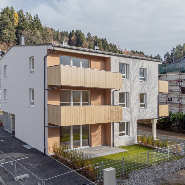 Die Wohnanlage besteht aus zwei oberirdischen Baukörpern mit vier Geschossen in Massivbauweise. Die Wohnungen werden jeweils mit einem zentralen Treppenhaus inkl. Aufzug, von den Stellplätzen zugänglich, erschlossen.